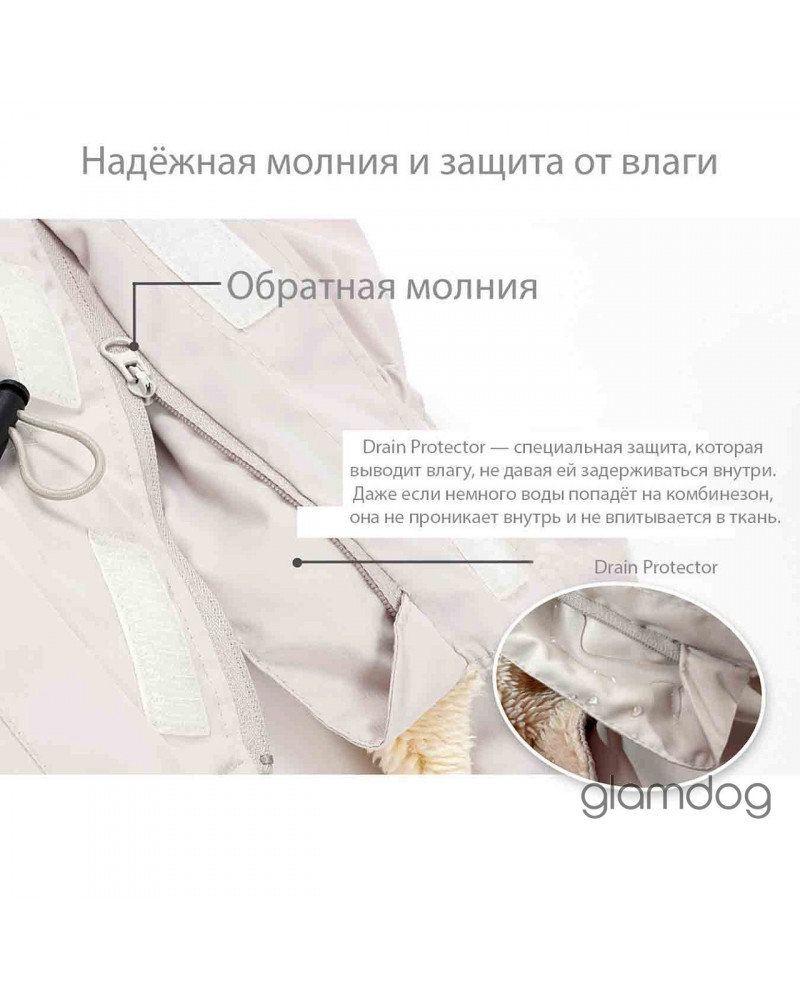 — Не промокает. Дождь, снег или слякоть — ткань просто отталкивает влагу, собака остаётся сухой.