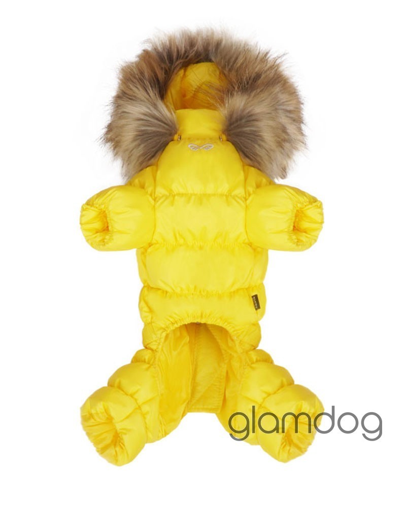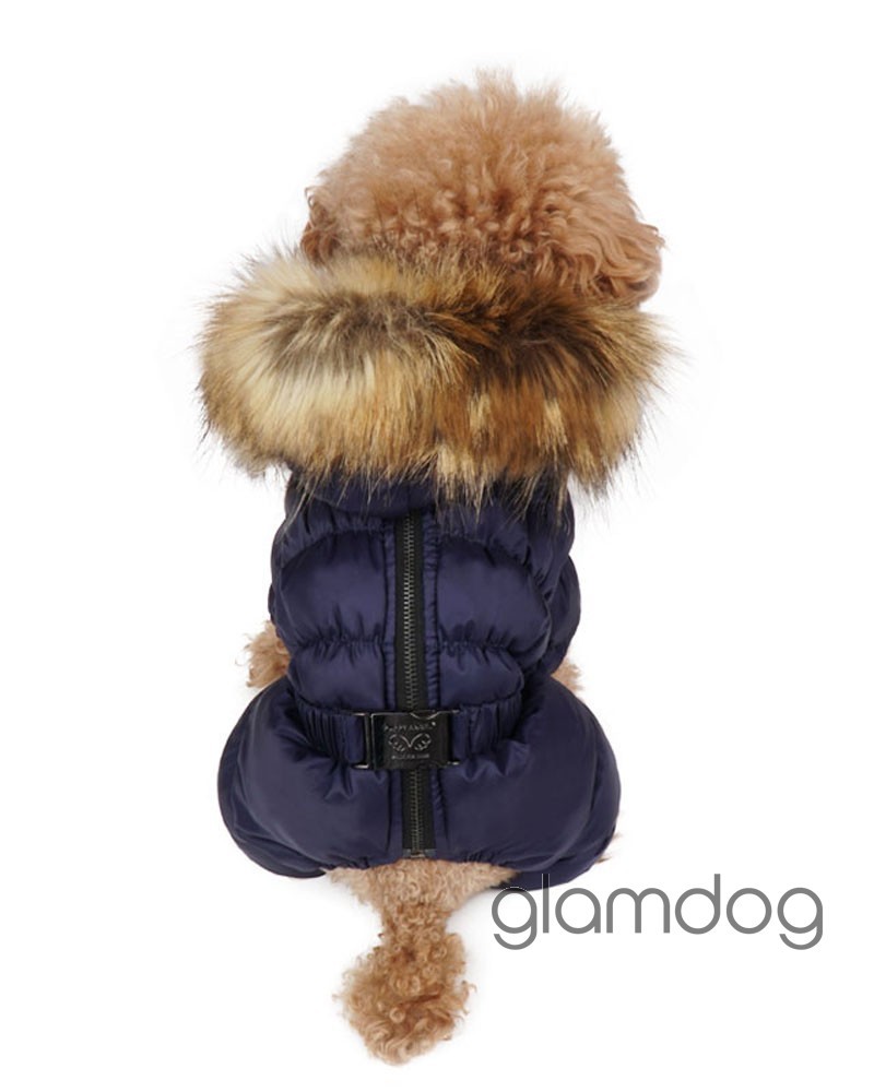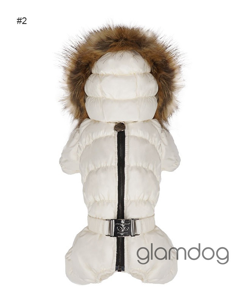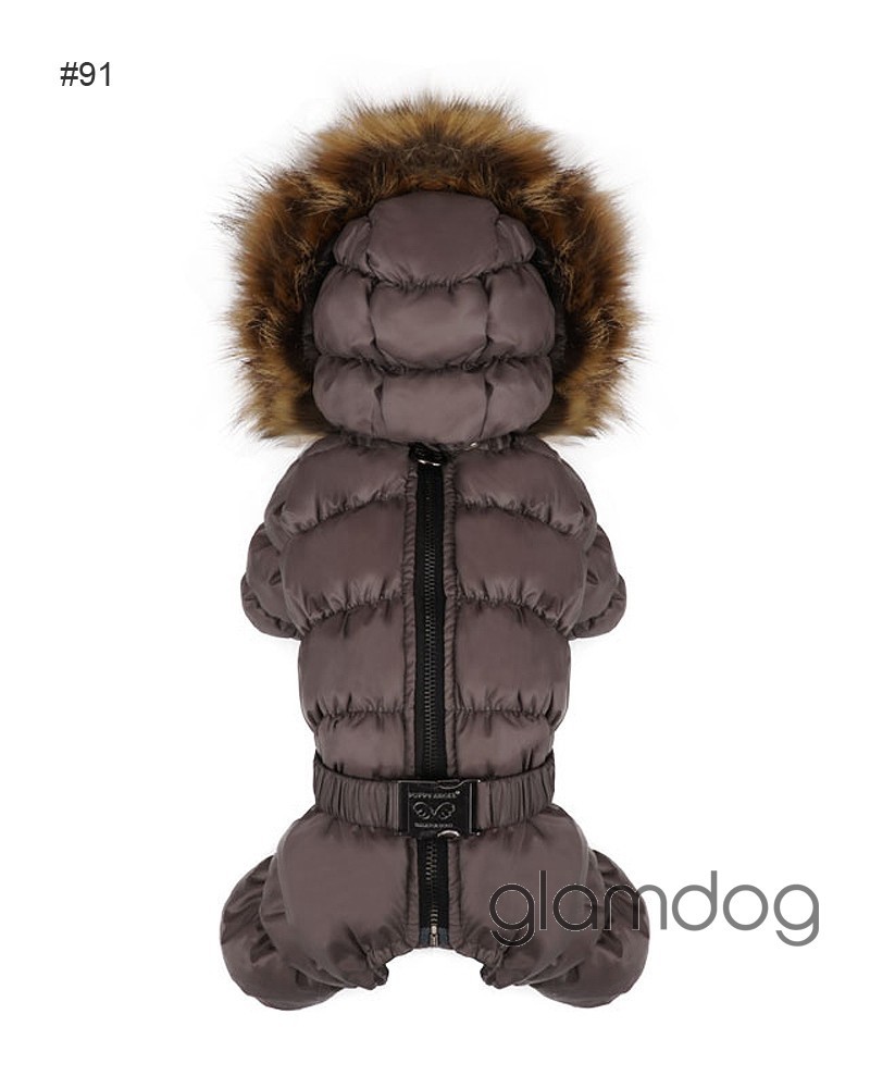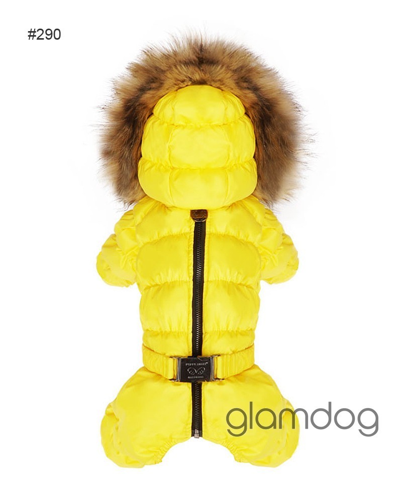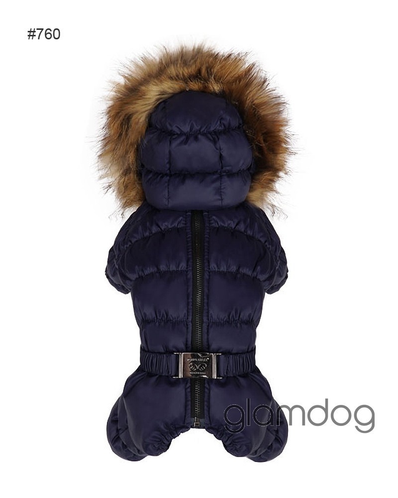 Роскошный vip комбинезон для собак из L-tex 20D ткани — супер легкая высококачественная плащевка с отливом, которую используют в производстве такие люксовые бренды как Prada и Moncler. Внутри — искусственный гусиный пух. Сохраняющая тепло система тройных протекторов. Водоотталкивающая защита ткани — water proof (2000 mm). Ветро- и грязенепроницаемый. Высокий воротник защитит от ветра. Капюшон съемный, на кнопках, с меховой опушкой для дополнительного тепла. Животик полуоткрыт — модель для мальчиков. Застёгивается на молнию на спинке.