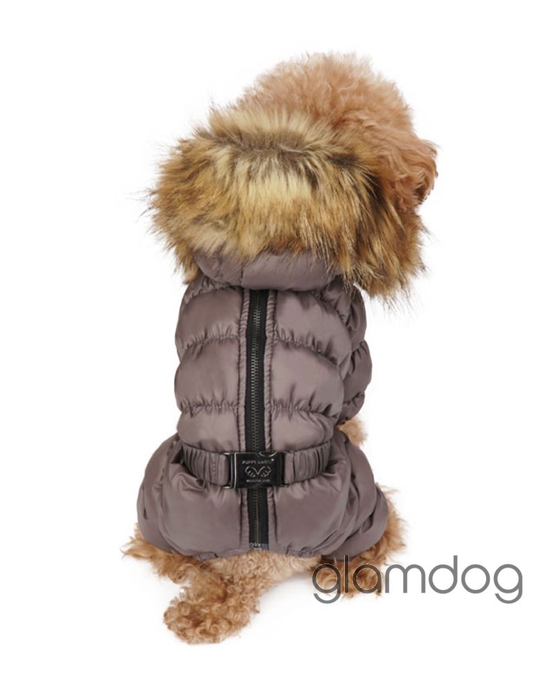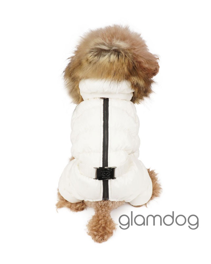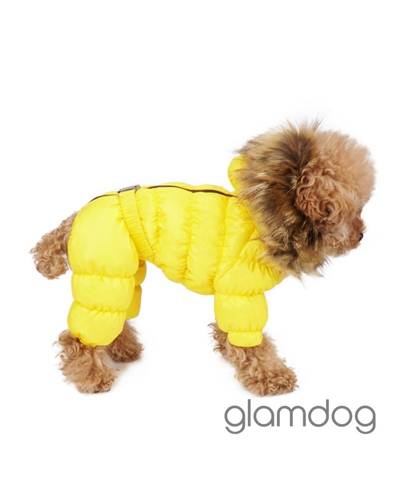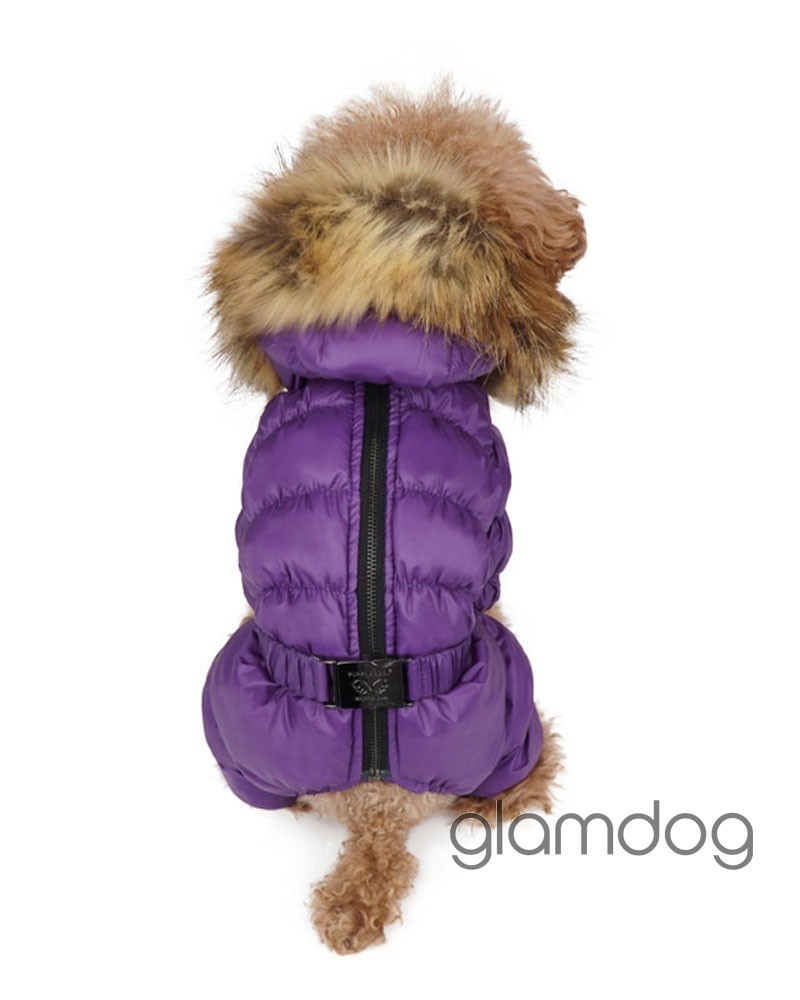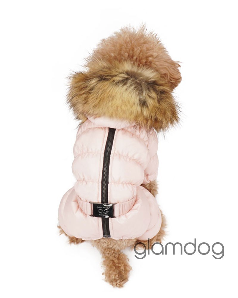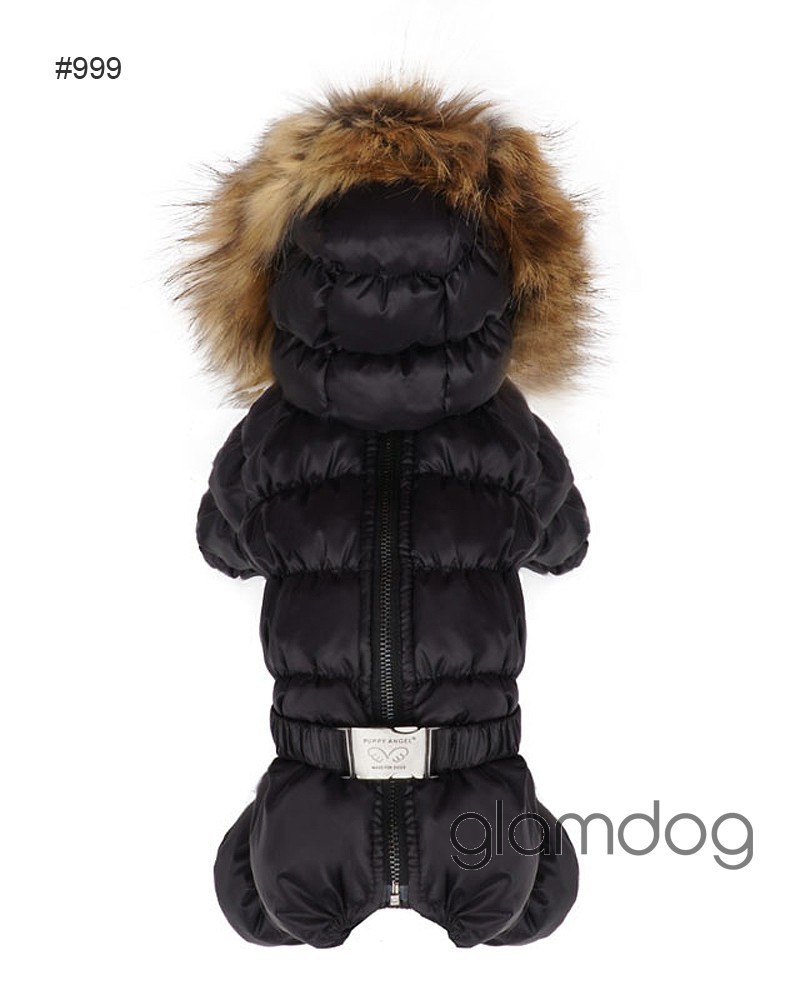 Роскошный vip комбинезон для собак из L-tex 20D ткани — супер легкая высококачественная плащевка с отливом, которую используют в производстве такие люксовые бренды как Prada и Moncler. Внутри — искусственный гусиный пух. Сохраняющая тепло система тройных протекторов. Водоотталкивающая защита ткани — water proof (2000 mm). Ветро- и грязенепроницаемый. Высокий воротник защитит от ветра. Капюшон съемный, на кнопках, с меховой опушкой для дополнительного тепла. Животик полуоткрыт — модель для мальчиков. Застёгивается на молнию на спинке.