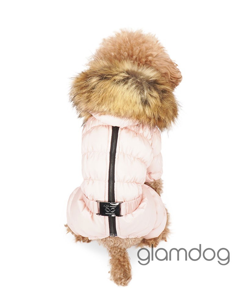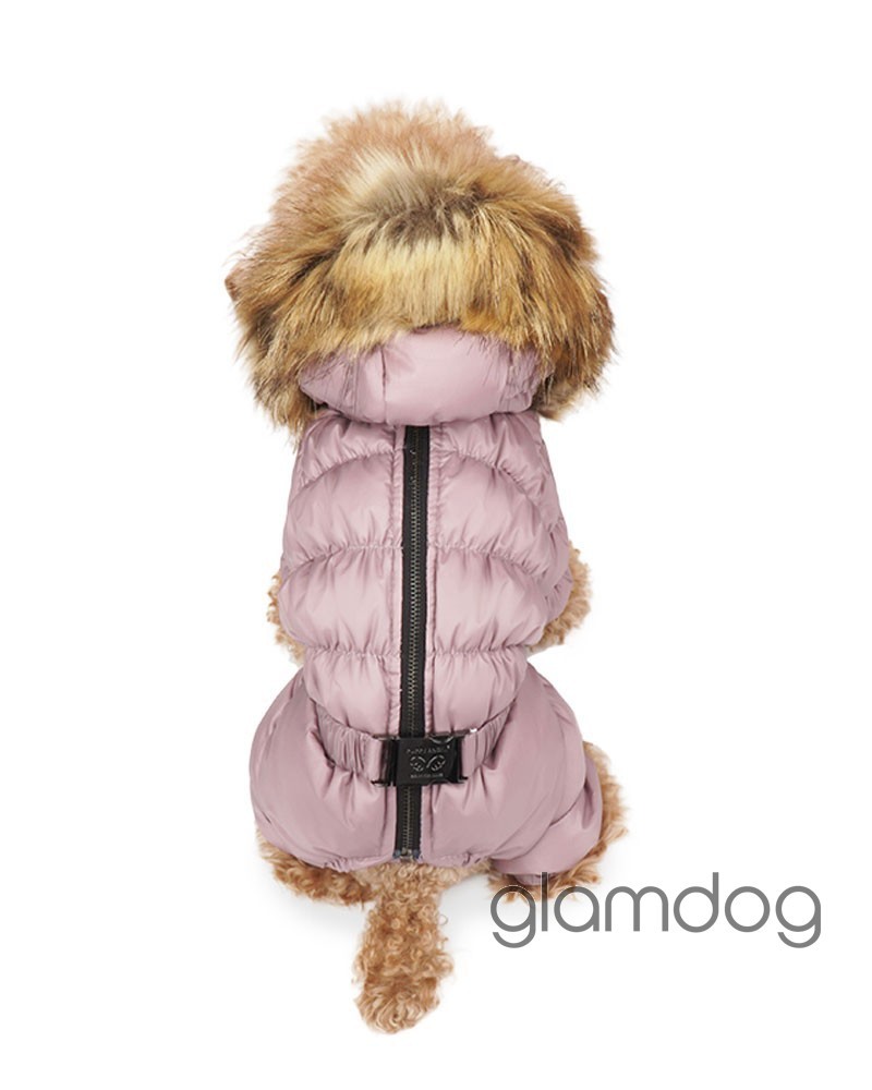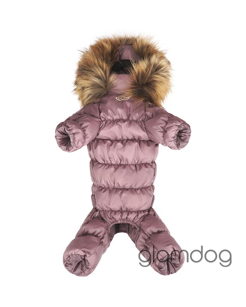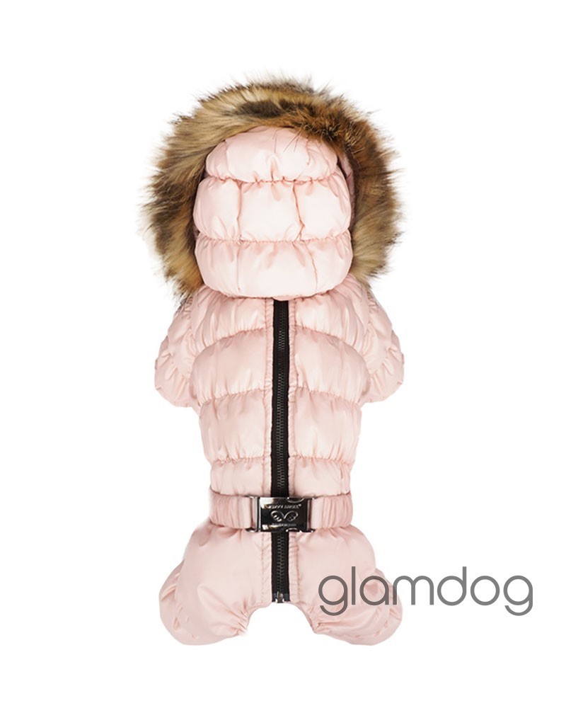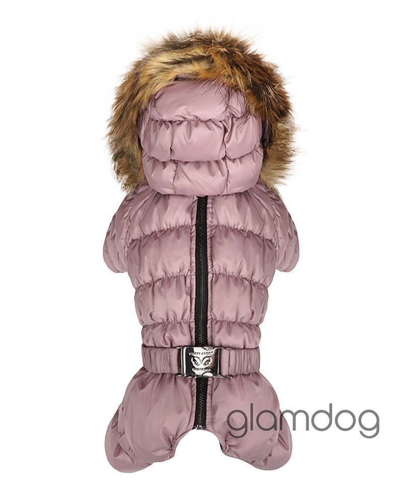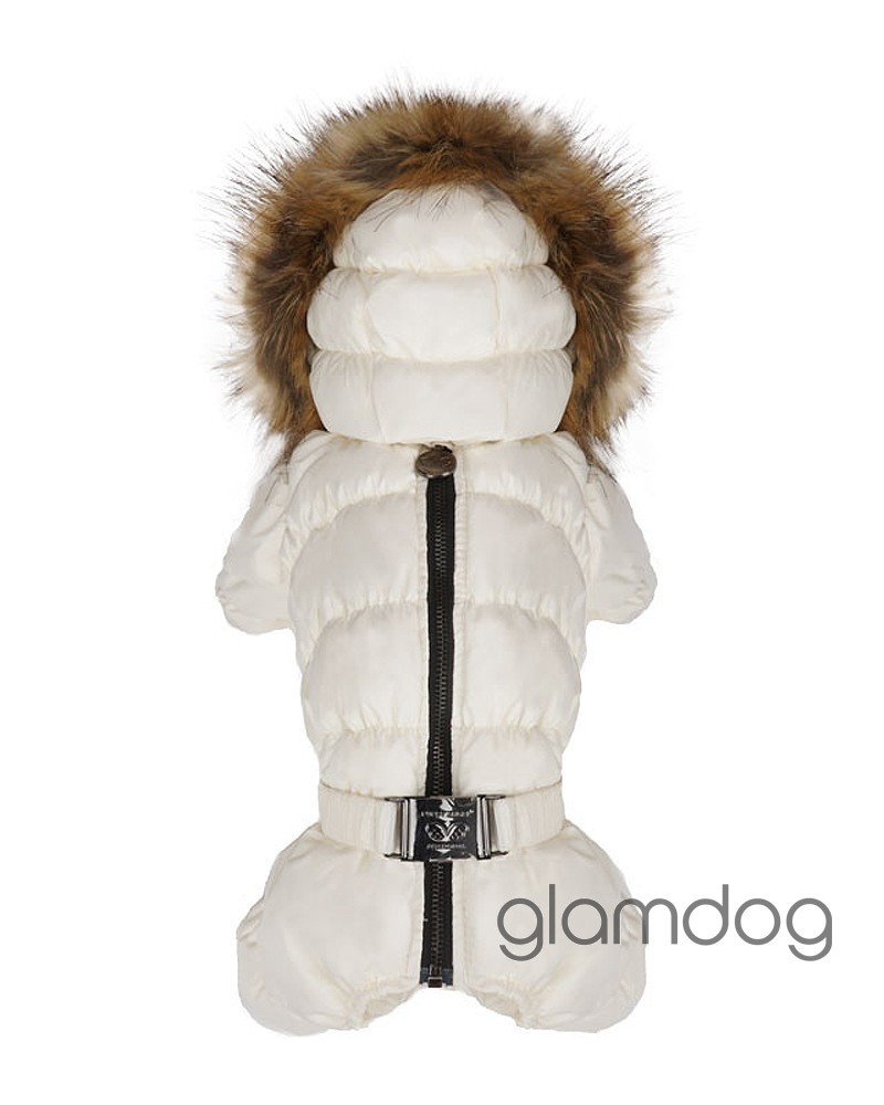 Роскошный vip комбинезон для собак из L-tex 20D ткани — супер легкая высококачественная плащевка с отливом, которую используют в производстве такие люксовые бренды как Prada и Moncler. Внутри — искусственный гусиный пух. Сохраняющая тепло система тройных протекторов. Водоотталкивающая защита ткани — water proof (2000 mm). Ветро- и грязенепроницаемый. Высокий воротник защитит от ветра. Капюшон съемный, на кнопках, с меховой опушкой для дополнительного тепла. Животик закрыт — модель для девочек. Застёгивается на молнию на спинке.