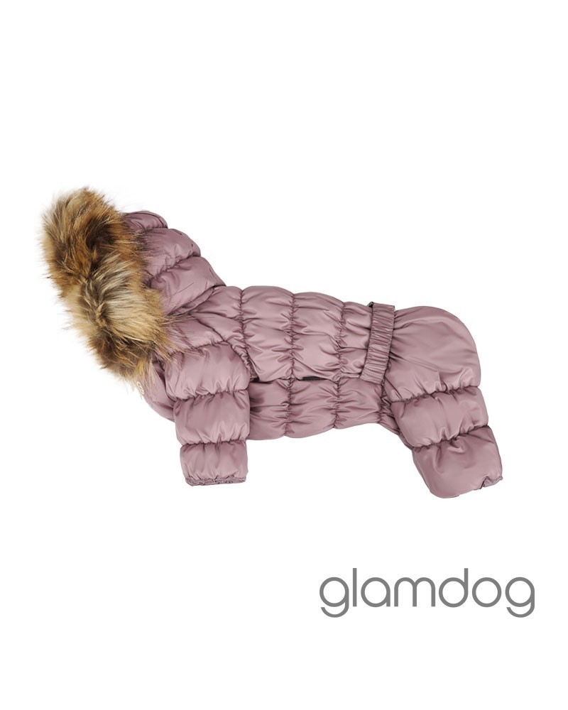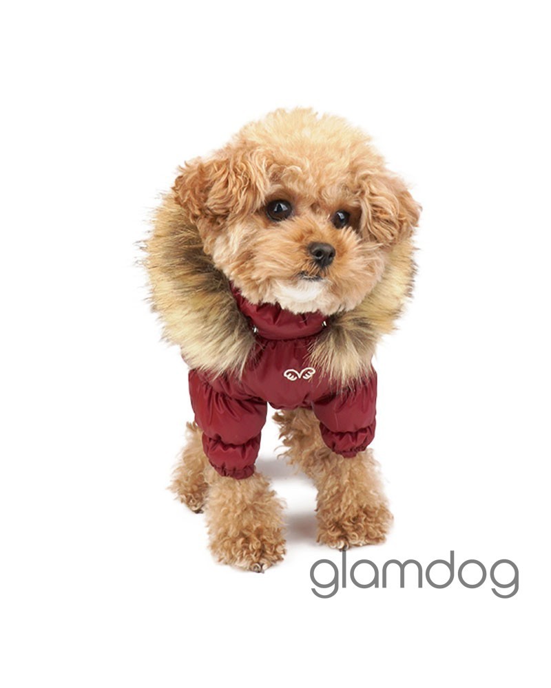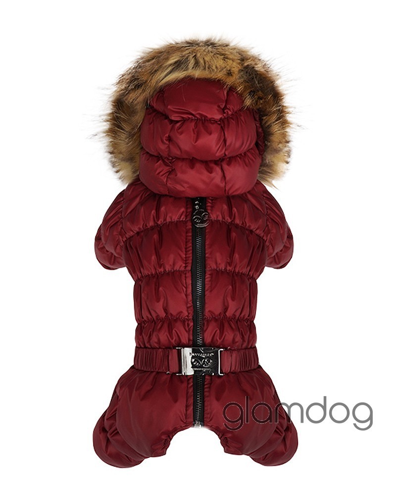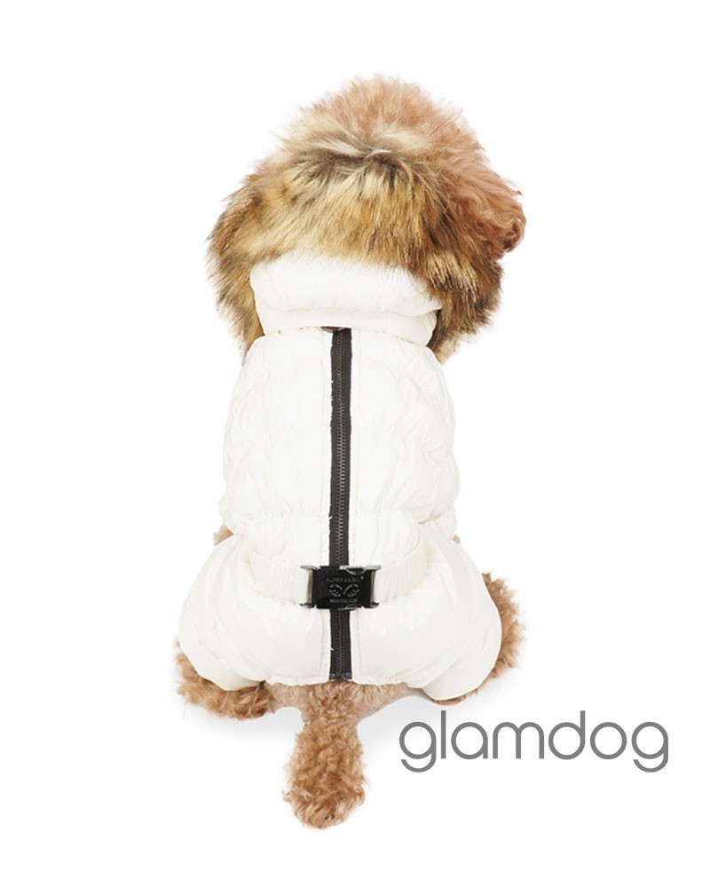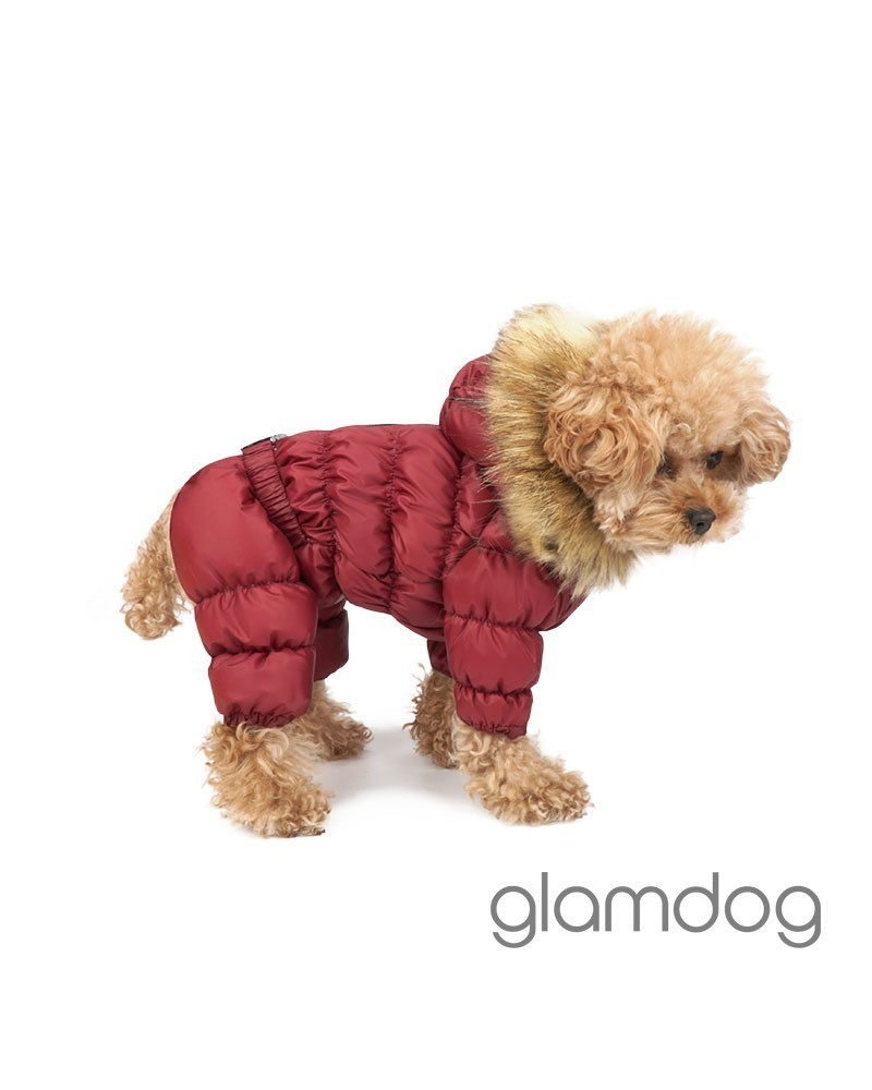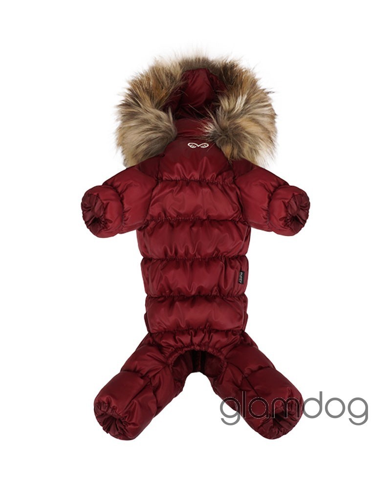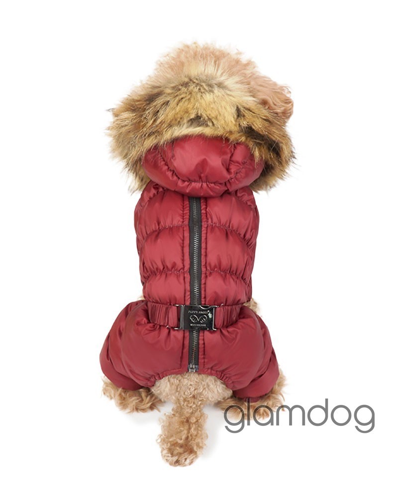 Роскошный vip комбинезон для собак из L-tex 20D ткани — супер легкая высококачественная плащевка с отливом, которую используют в производстве такие люксовые бренды как Prada и Moncler. Внутри — искусственный гусиный пух. Сохраняющая тепло система тройных протекторов. Водоотталкивающая защита ткани — water proof (2000 mm). Ветро- и грязенепроницаемый. Высокий воротник защитит от ветра. Капюшон съемный, на кнопках, с меховой опушкой для дополнительного тепла. Животик закрыт — модель для девочек. Застёгивается на молнию на спинке.