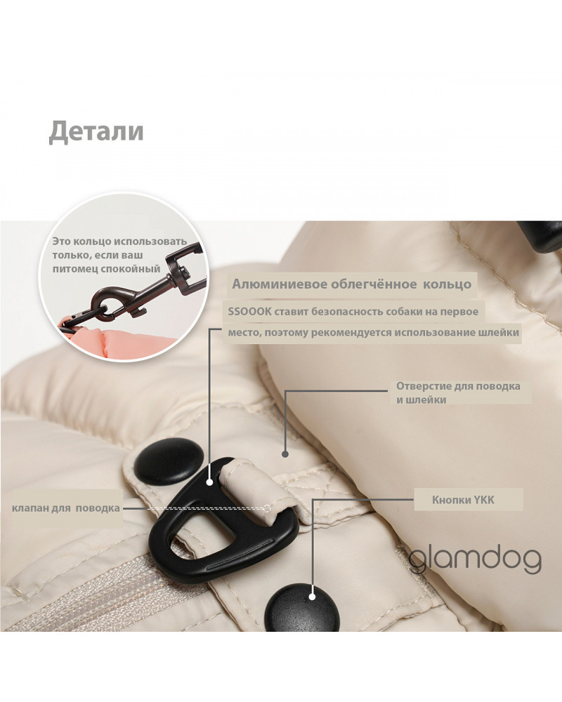 — Лёгкое кольцо — для брелка/адресника и спокойных собак; если же ваш питомец очень активен, советуем использовать шлейку и поводок и клапан на спинке.