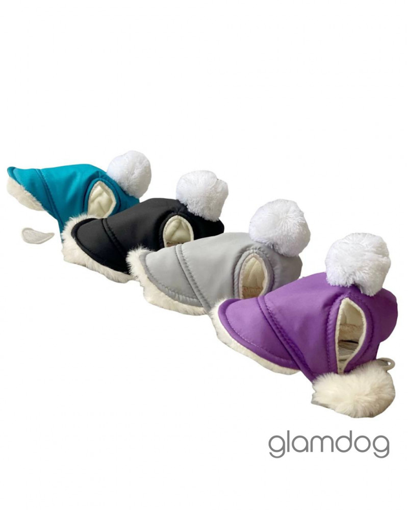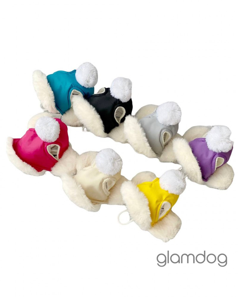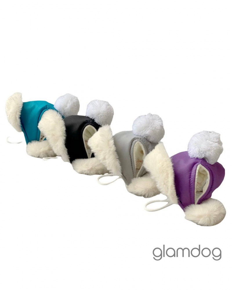 Верх выполнен из курточной ткани, внутри искусственный мех. Под мордочкой шнурок с фиксатором. Помпон можно отстегнуть.